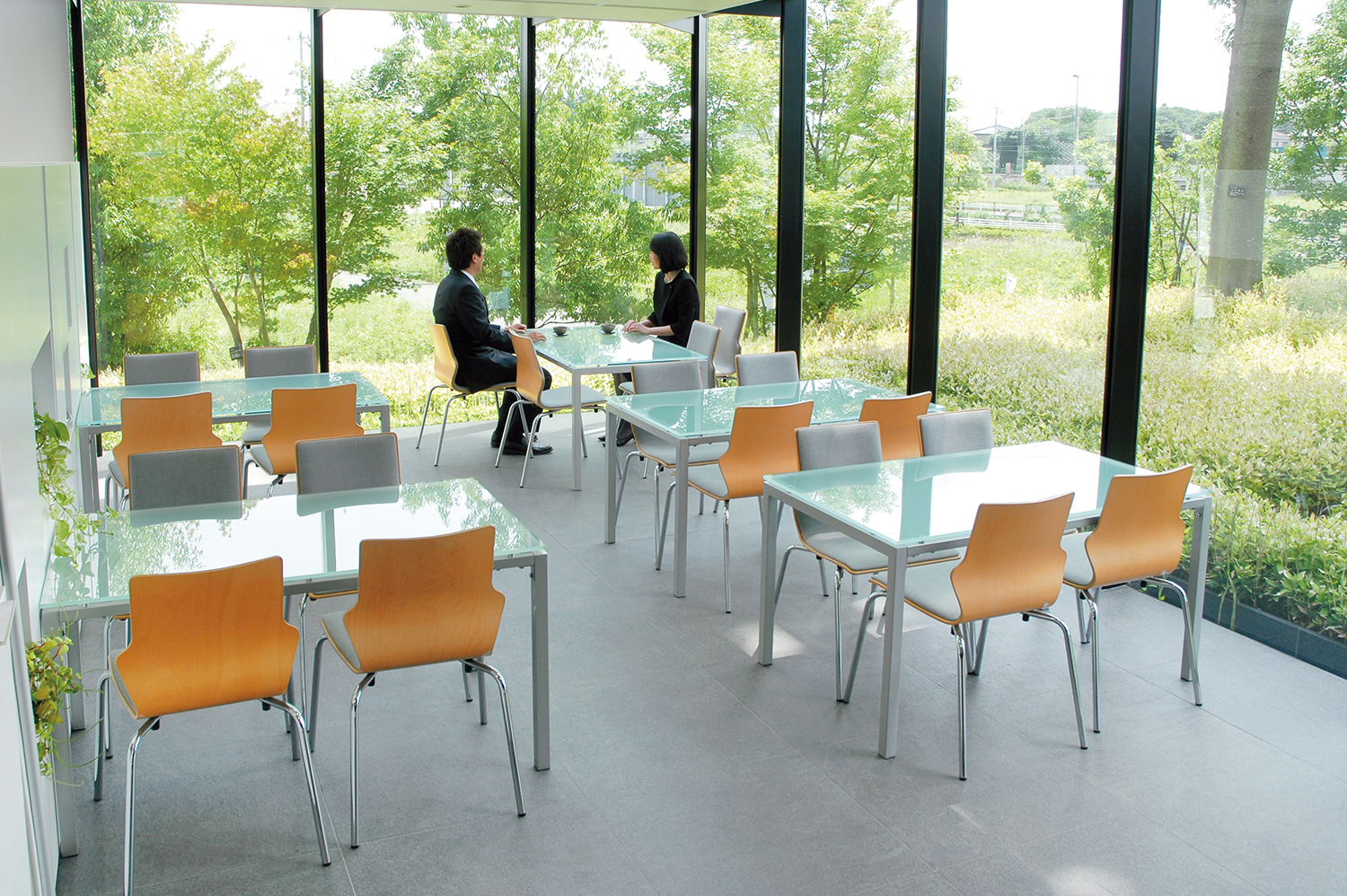 光と緑に囲まれた、明るく落ち着いた休憩室は、ゆったりとおくつろぎいただけます。